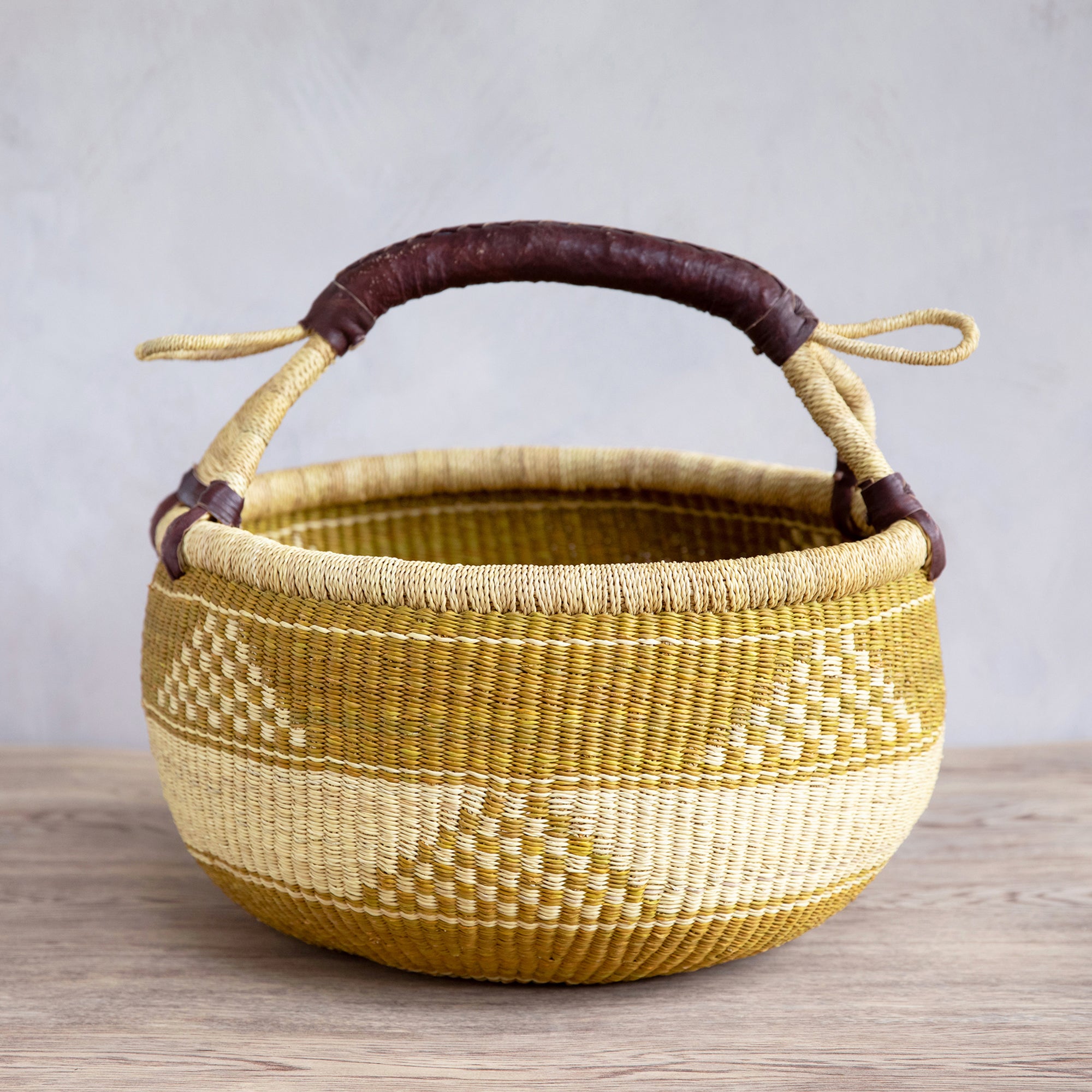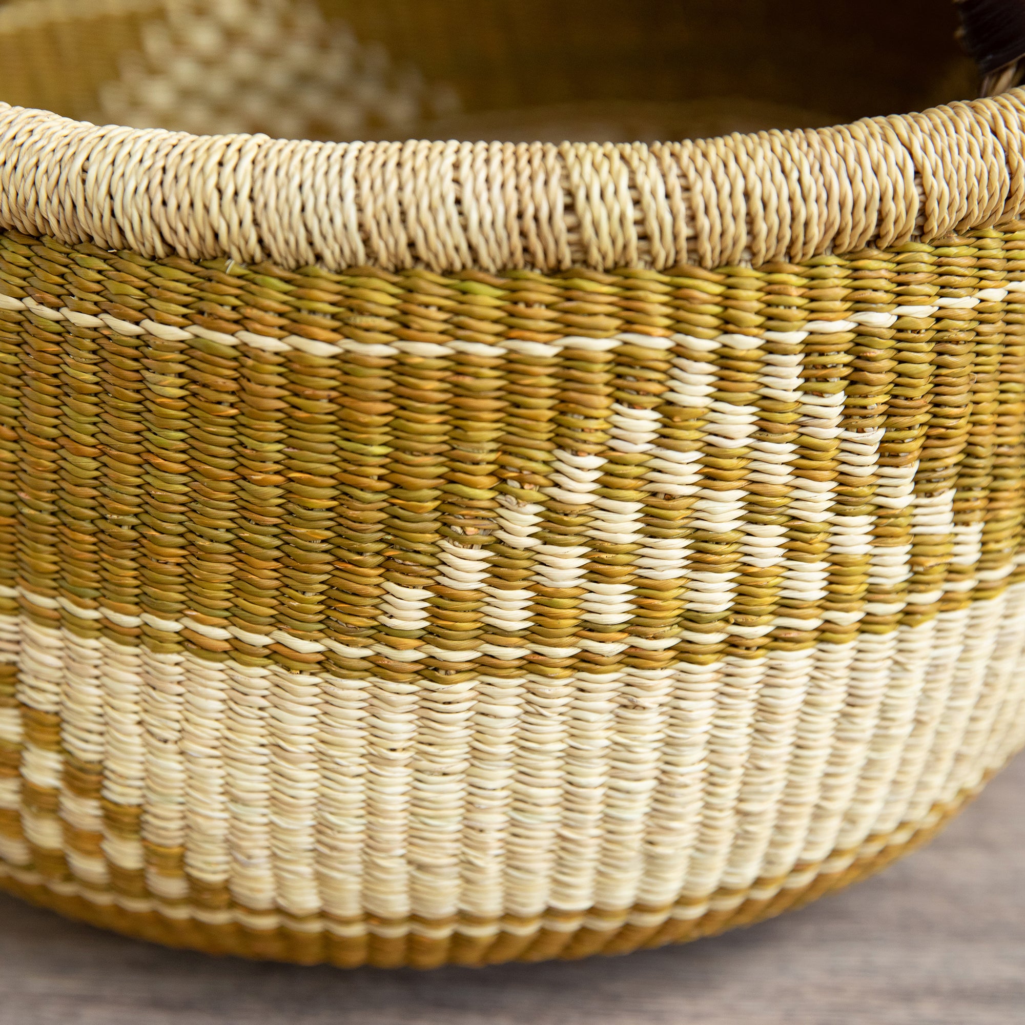 Each basket is individually handwoven with care, telling a story of craftsmanship and empowerment. Slight colour/pattern variations are embraced as part of the unique appeal. You will receive a basket in the same colour scheme, but the pattern may vary.