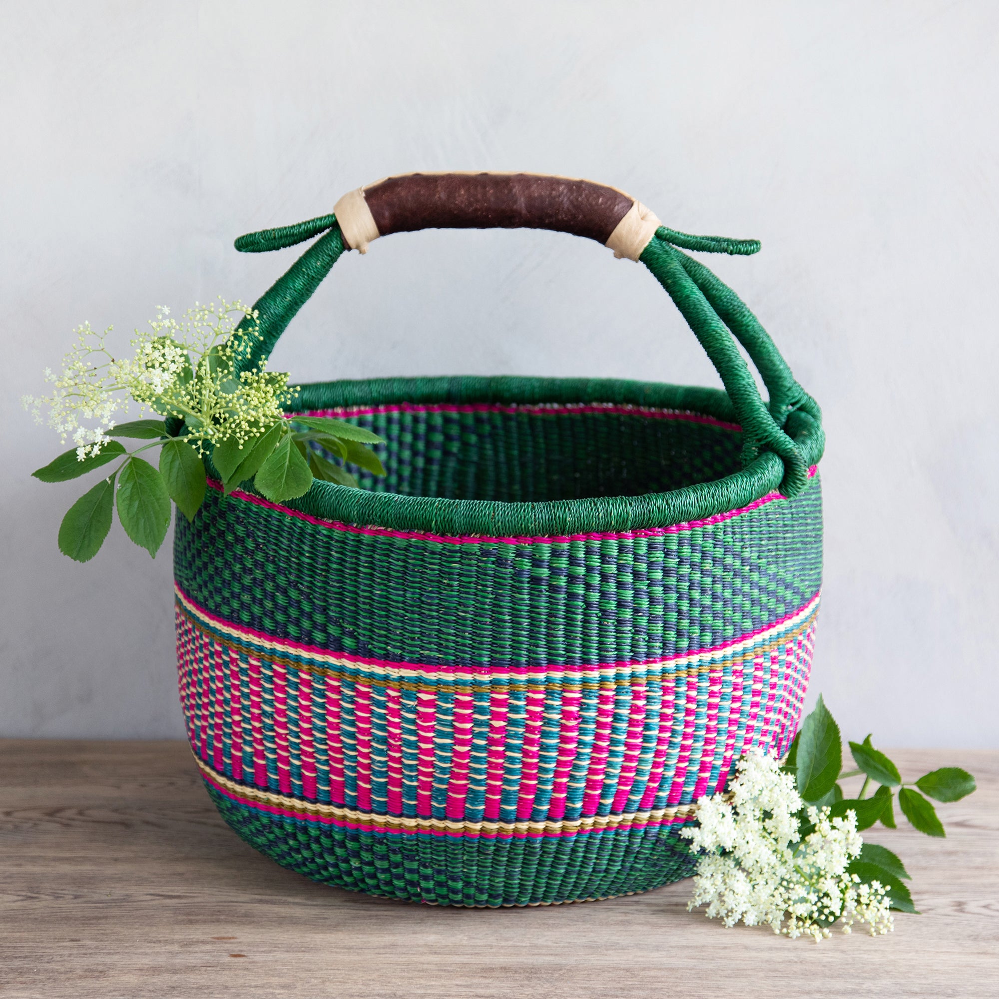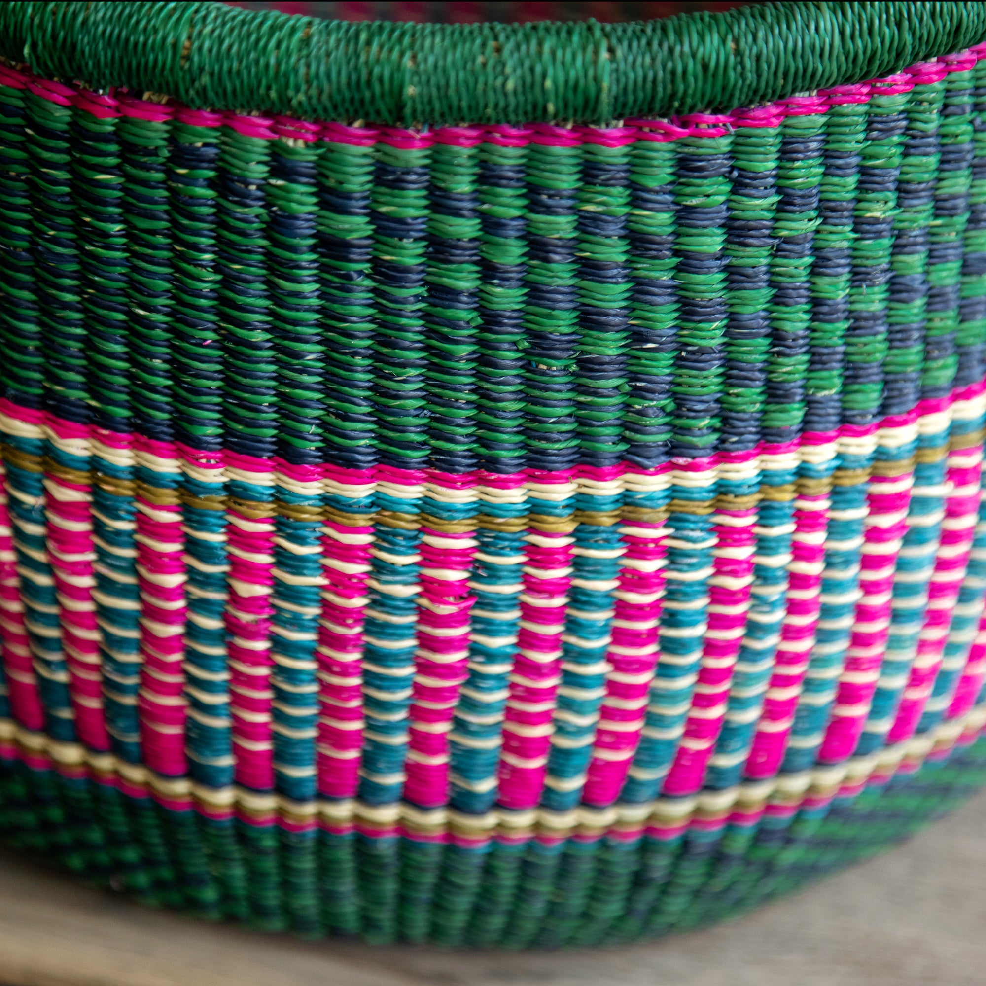 Each basket is individually handwoven with care, telling a story of craftsmanship and empowerment. Slight colour/pattern variations are embraced as part of the unique appeal. You will receive a basket in the same colour scheme, but the pattern may vary.