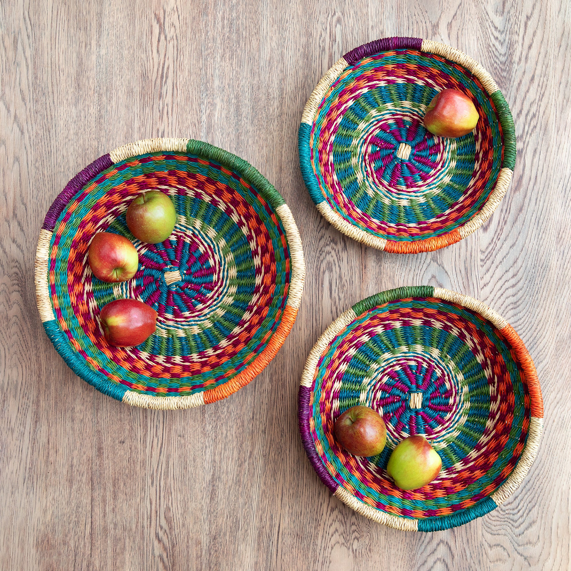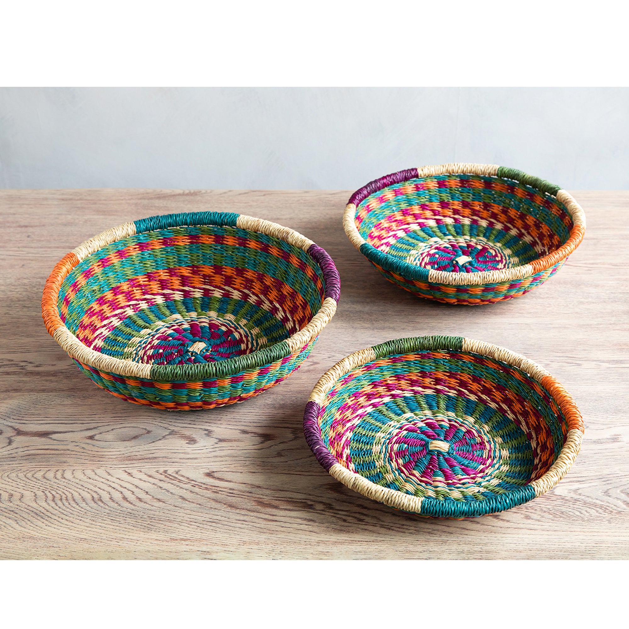 Brighten your table with our handwoven fruit baskets. Lightweight yet durable, these colourful bowls work beautifully for displaying fresh fruit or organising everyday items. Alternatively, hang them on your walls as stunning decorative pieces.