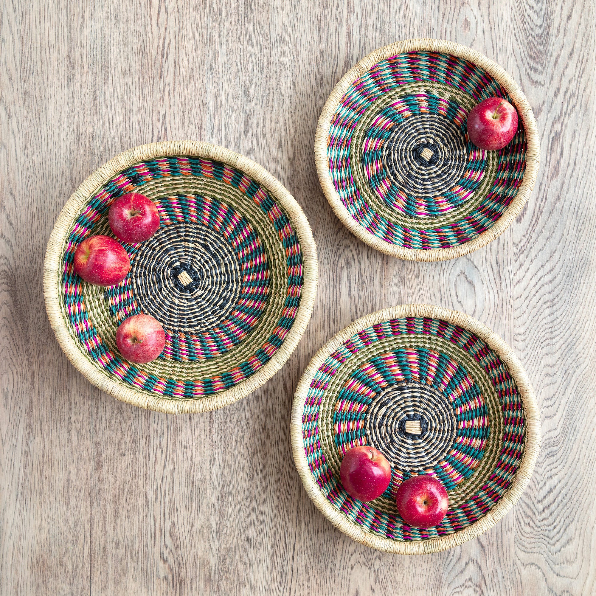 Brighten your table with our handwoven fruit baskets. Lightweight yet durable, these colourful bowls work beautifully for displaying fresh fruit or organising everyday items. Alternatively, hang them on your walls as stunning decorative pieces.