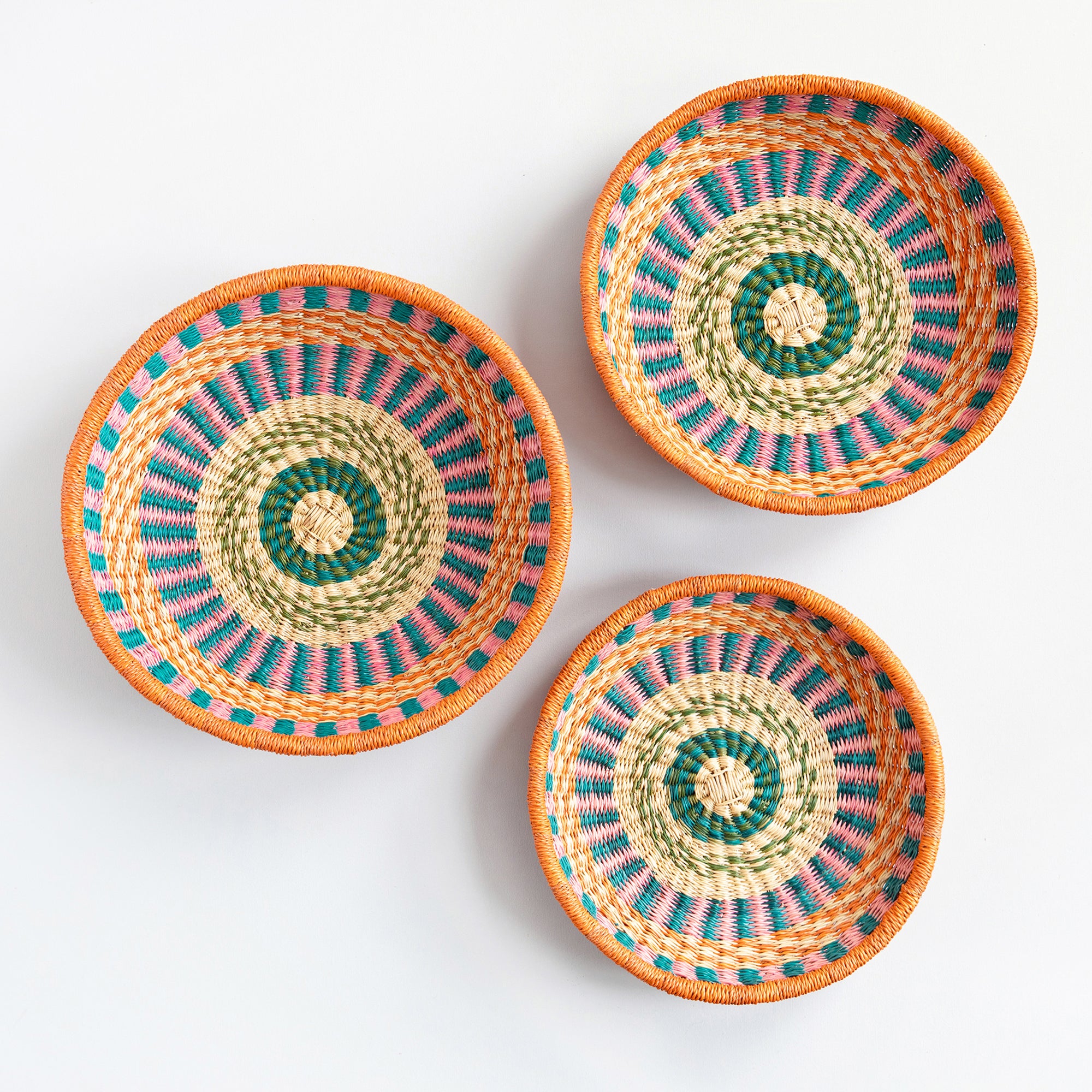 Brighten your table with our handwoven fruit baskets. Lightweight yet durable, these colourful bowls work beautifully for displaying fresh fruit or organising everyday items. Alternatively, hang them on your walls as stunning decorative pieces.