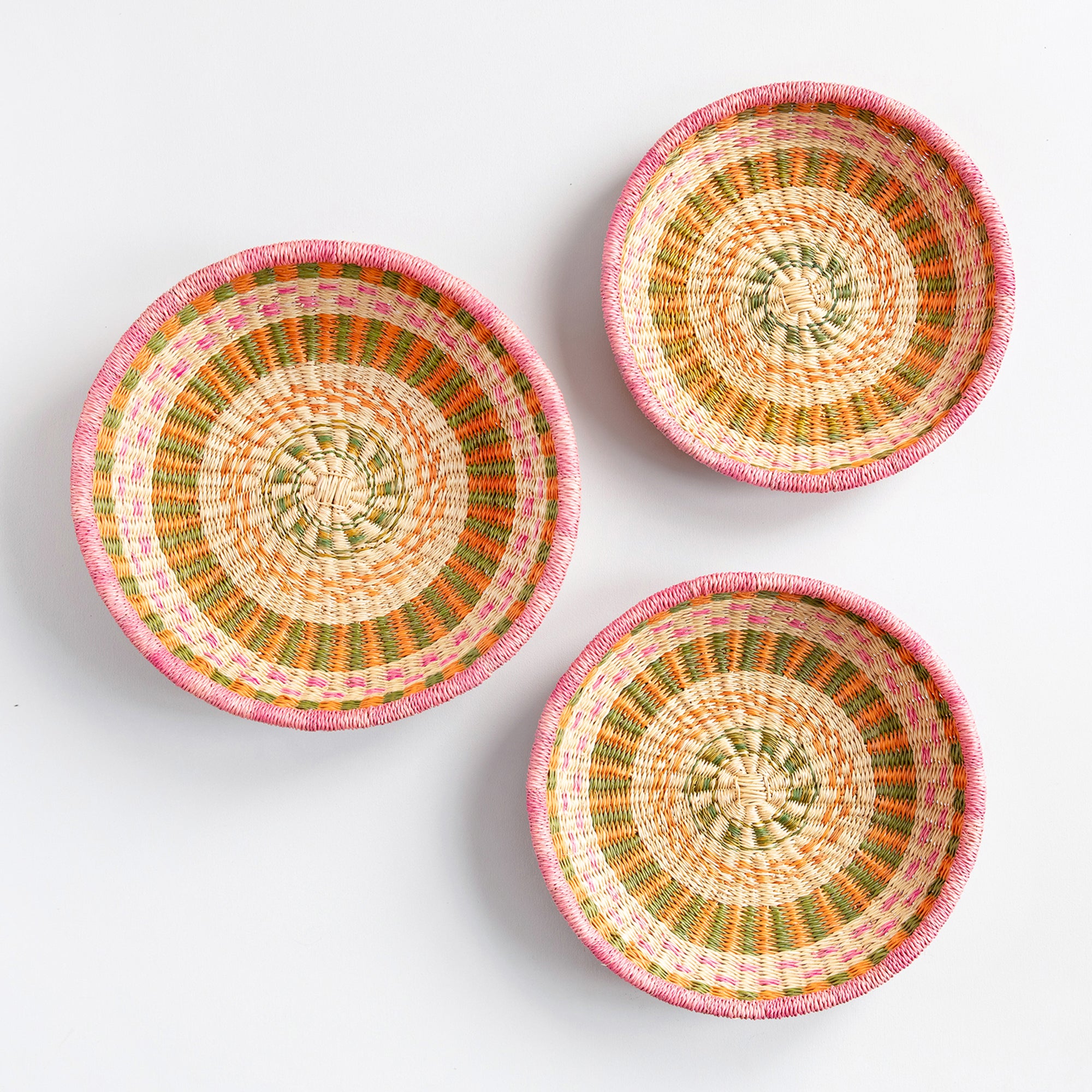Brighten your table with our handwoven fruit baskets. Lightweight yet durable, these colourful bowls work beautifully for displaying fresh fruit or organising everyday items. Alternatively, hang them on your walls as stunning decorative pieces.